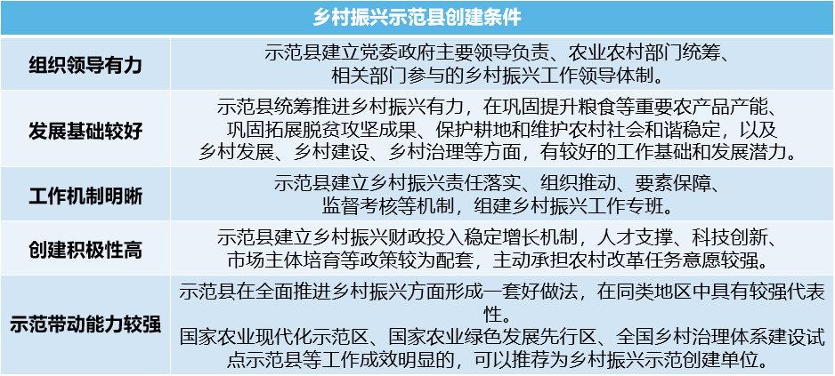 什么樣的縣可以申報呢?創建鄉村振興示范縣、示范鄉鎮、示范村,應符合以下基本條件。同時,要注意地方政府性債務風險較高地區將被直接否決!